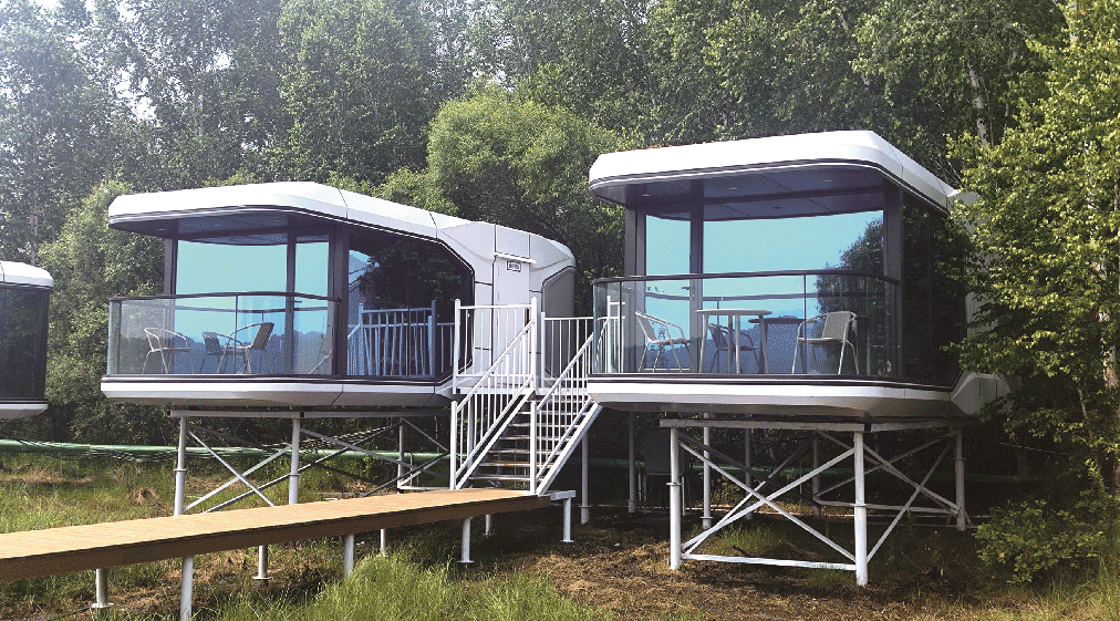 太空舱还具备强环境适应性。主体多采用钢结构 + 保温复合板,抗风等级可达8 - 10级,耐寒耐热性优于普通集成房屋,能适应山地、海边、高原等复杂环境,且无需复杂地基,仅需简单水泥基座或钢结构支架即可落地,对场地破坏小。
